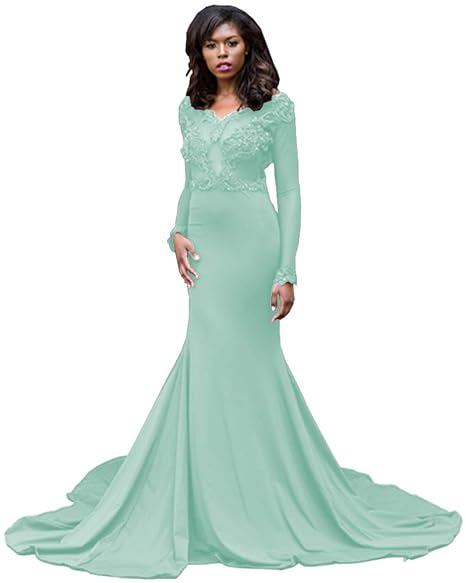 Jqld Women S Long Sleeve Mermaid Prom Dresses Lace Open Back