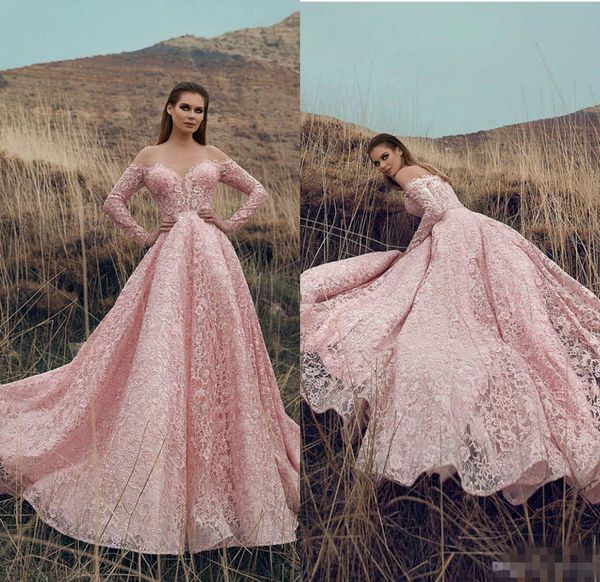 2019 Arabic Pink Prom Dresses Lace Appliqued Off The Shoulder A