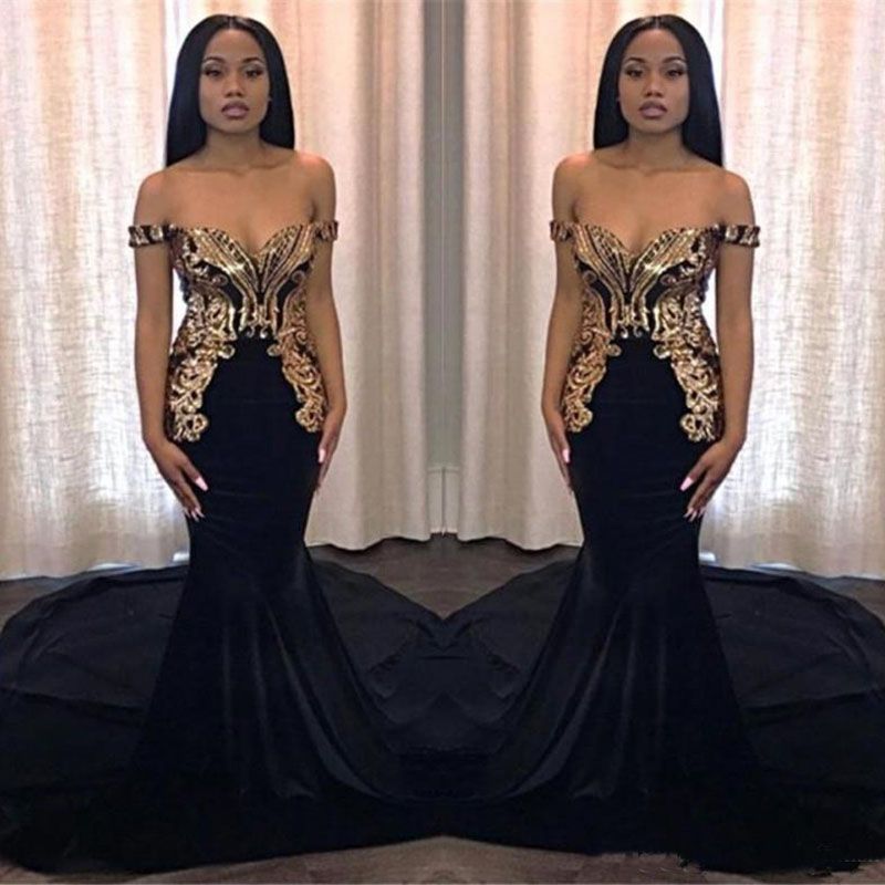 2019 Black With Gold Appliques Mermaid Prom Dresses Junior Sweet