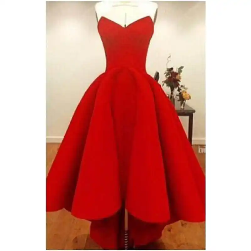 2018 High Low Red Prom Dresses Sexy Strapless Cheap Satin Short