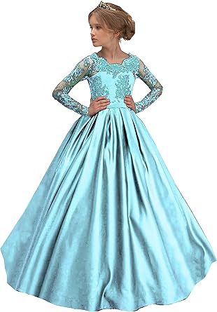 Amazon Com Junguan Girls Long Sleeves Pageant Dresses Lace Aline