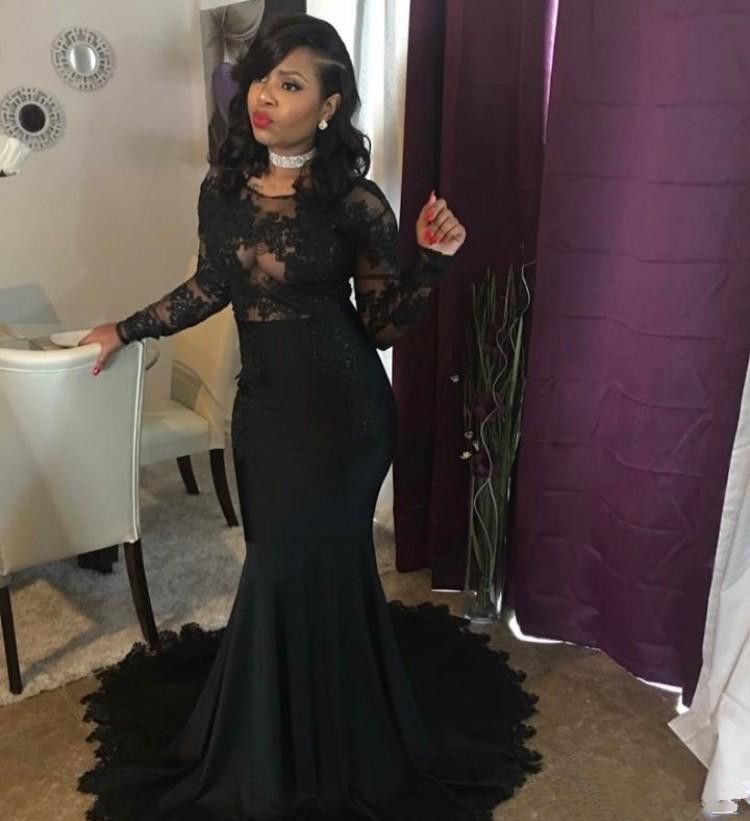 Mermaid Long Sleeve Prom Dress Pretty See Through Long Prom Dress