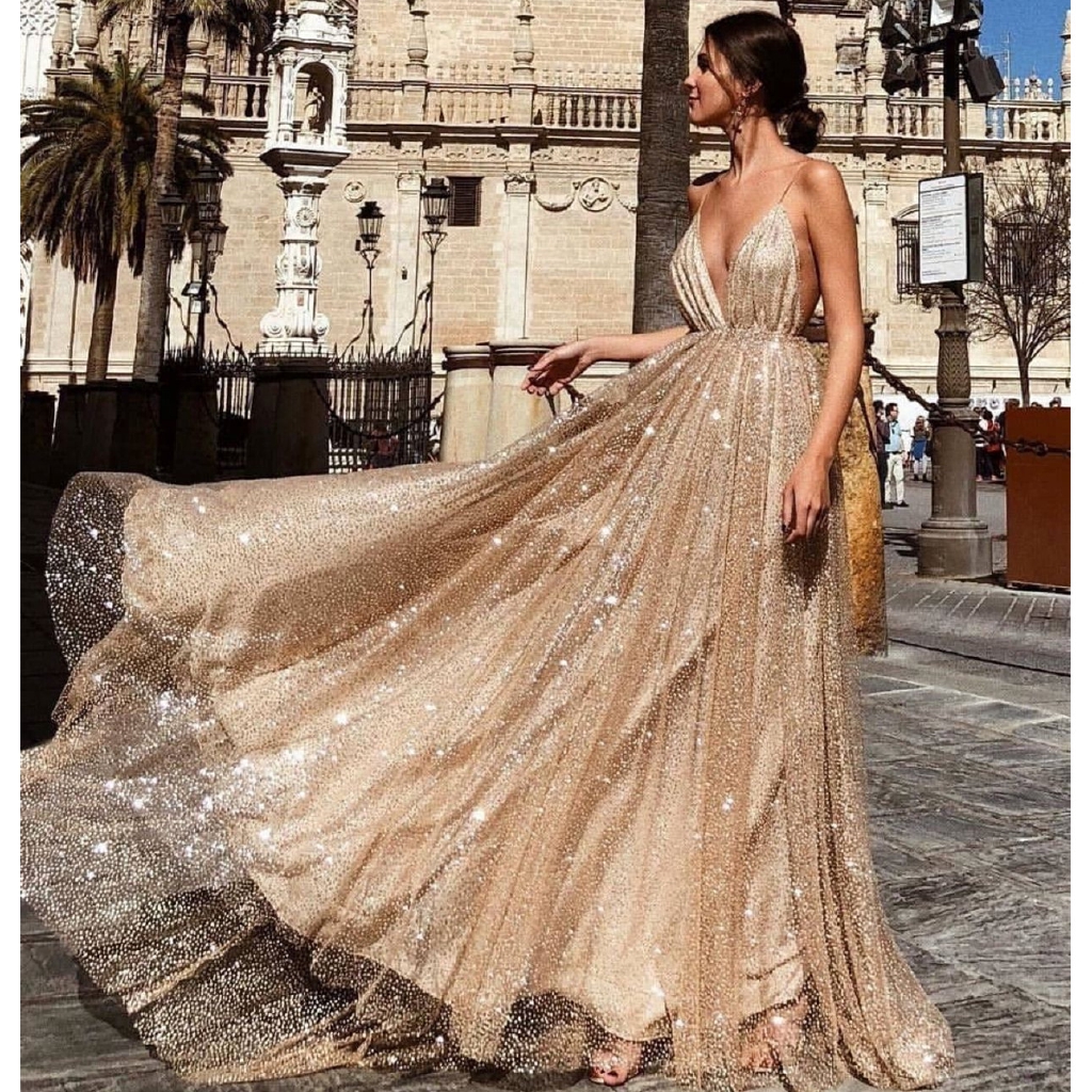 Sexy Long Prom Dresses Halter Floor Length Sequins Prom Dress