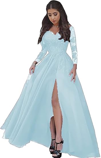 Amazon Com Lastbridal Women Lace S Long Sleeves Prom Dress High