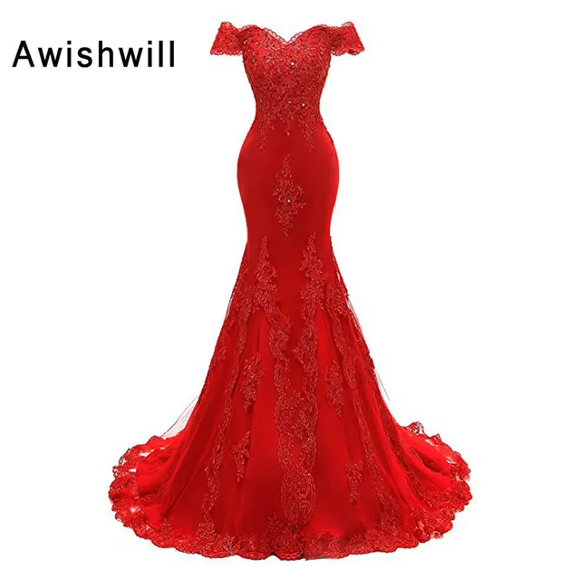 Ysmei Lace Mermaid Tulle Prom Dresses Off Shoulder Long Beaded