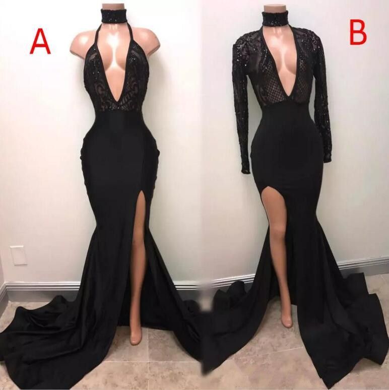 2019 African Beach Black Sexy Mermaid Prom Dresses Deep V Neck