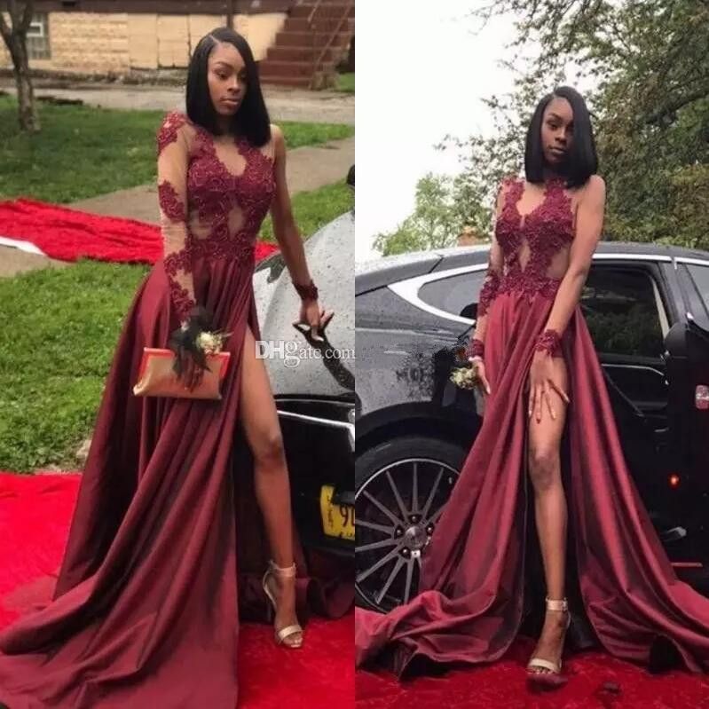 New Black Girls Mermaid Prom Dresses Sexy High Slits Burgundy