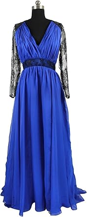 Amazon Com Charmingbridal Long Sleeve Black Lace Royal Blue Prom