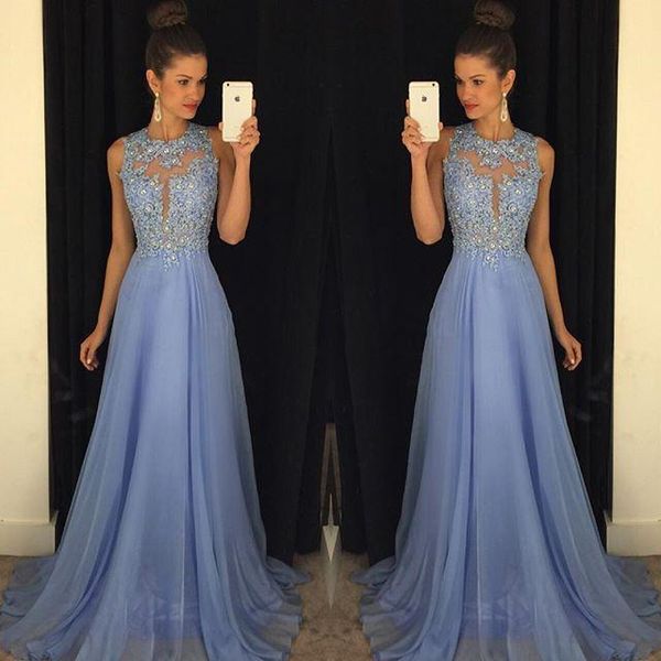2020 Sexy Lavender Prom Dresses Chiffon Long Lace Appliques Beaded