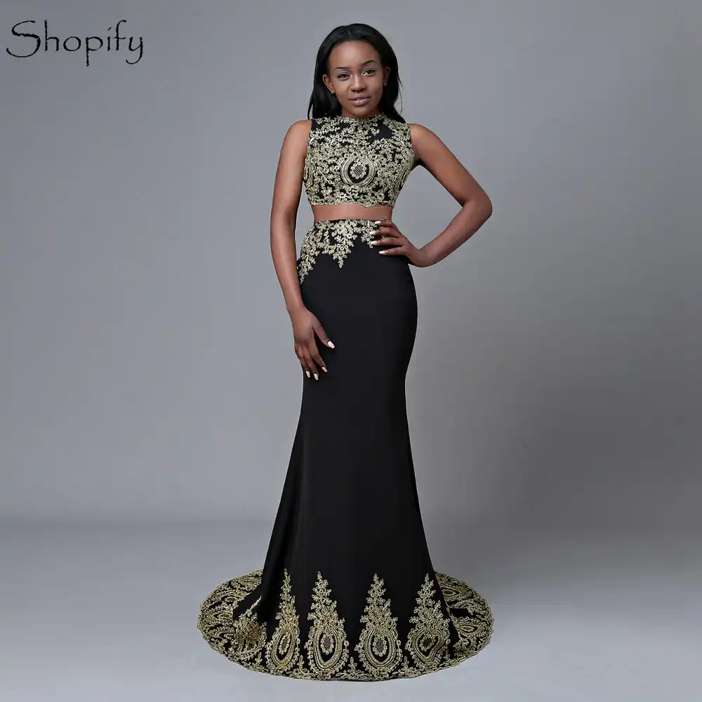 136 99 Black Long Prom Dresses 2019 Long Sleeves Lace African Two
