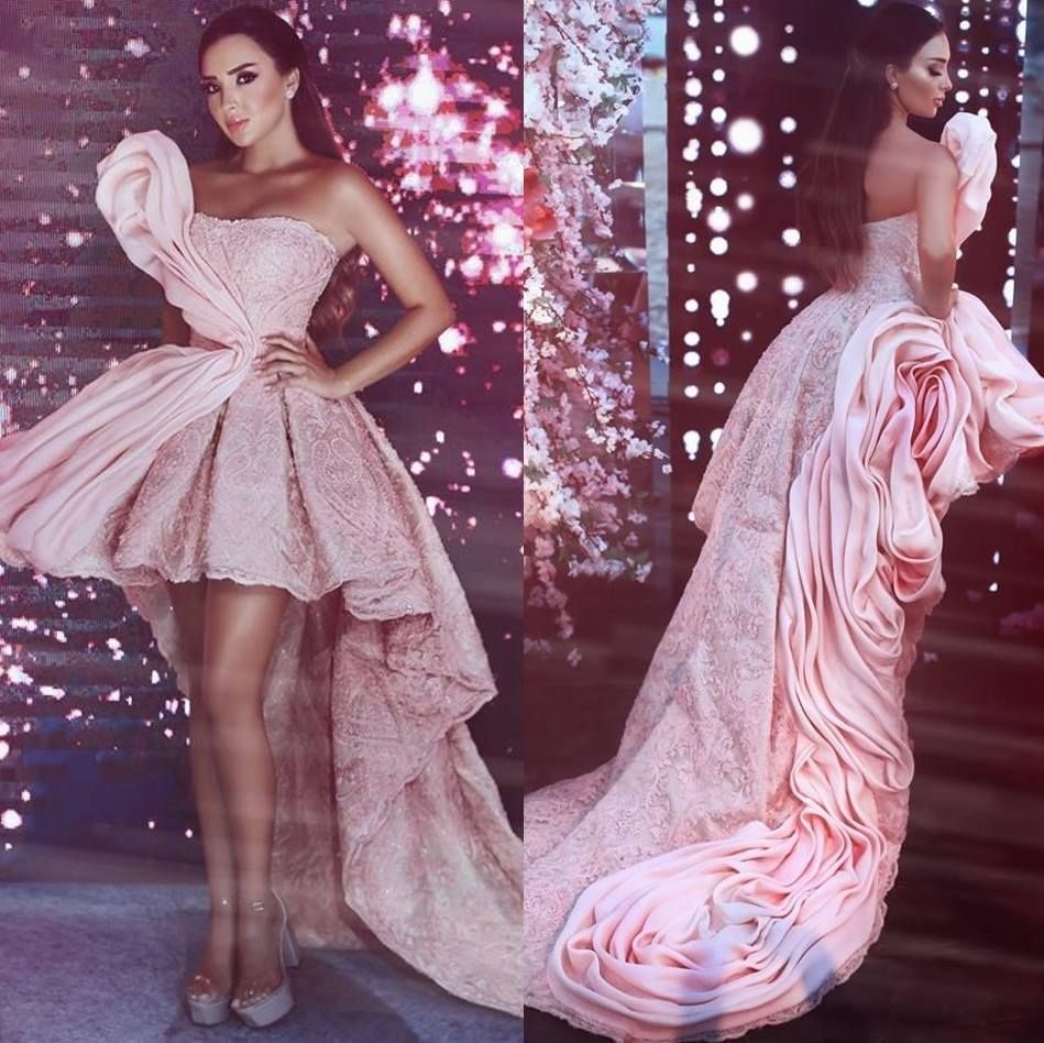 Modest High Low Pink Prom Dresses 2019 Dubai Style Arabic Long